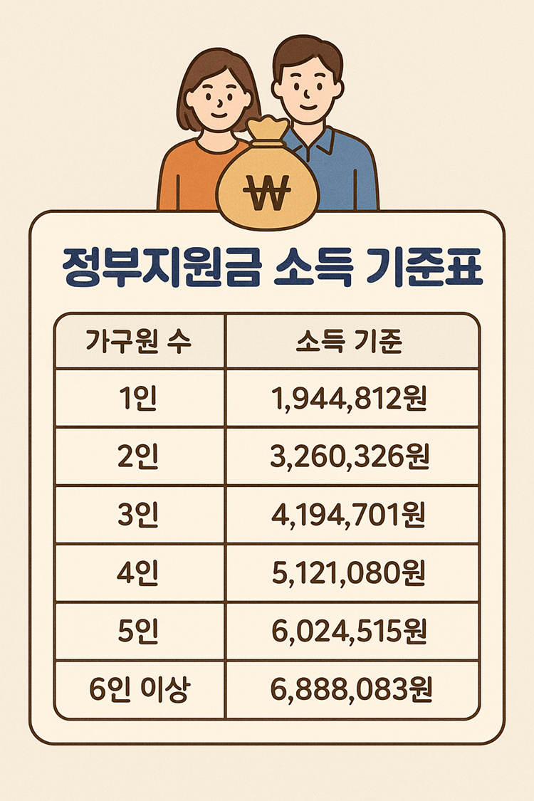 정부지원금 소득 기준표 — 2025년 가구원 수별 한눈에 정리