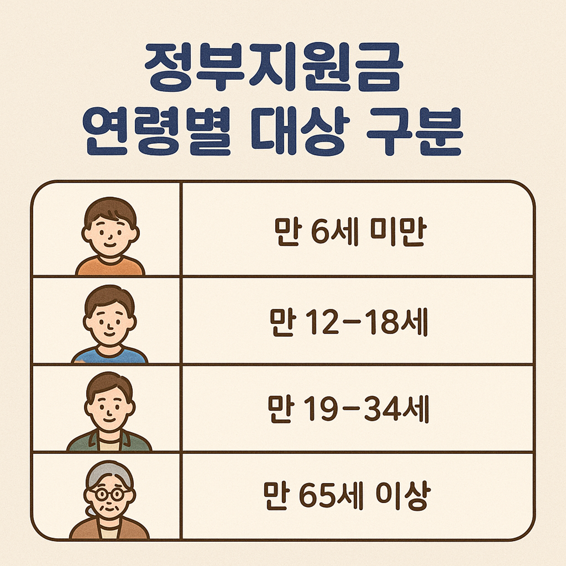 연령별 정부지원금 대상 구분표