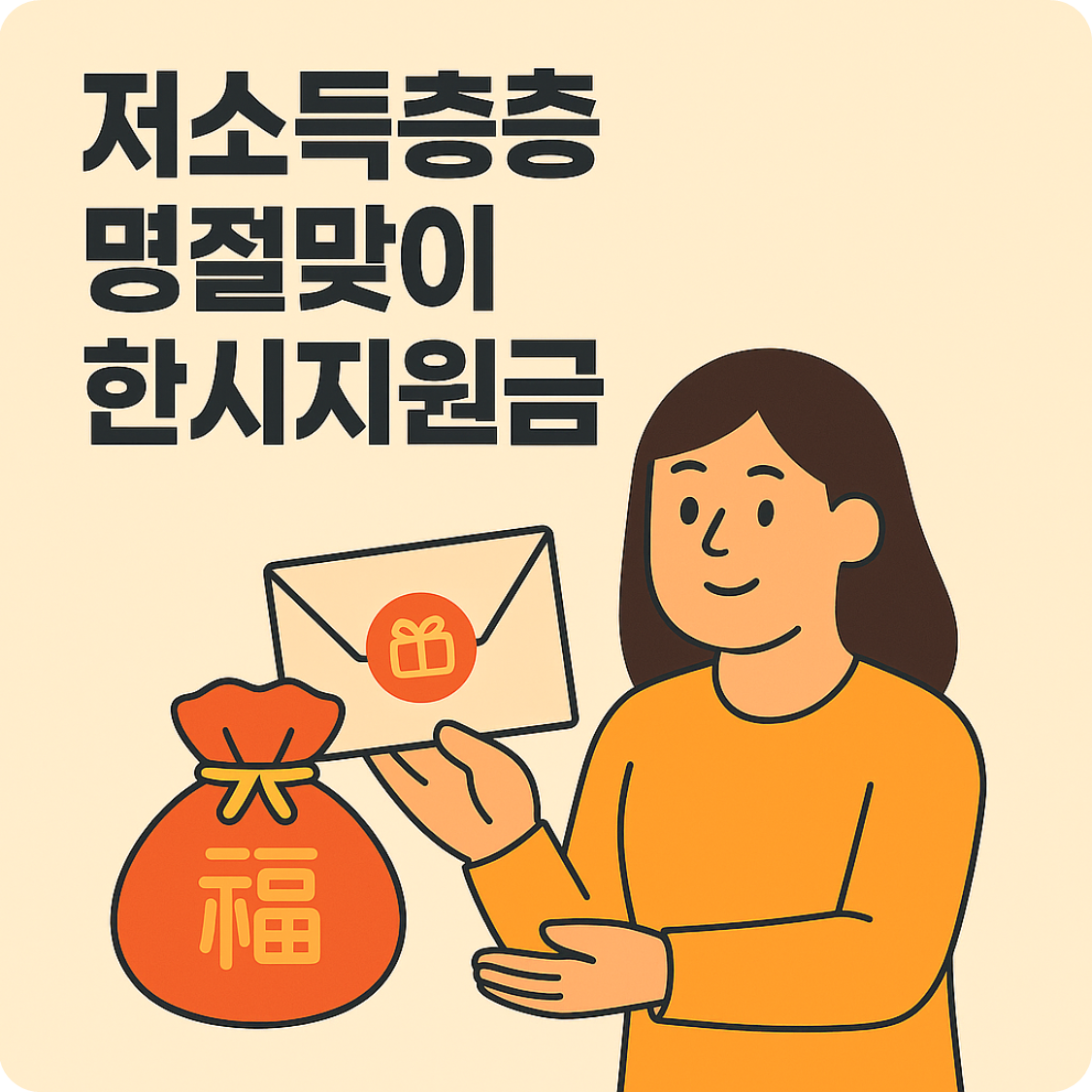 명절맞이 한시지원금은 설날과 추석을 앞두고 저소득층 가구의 생계비를 일시적으로 보조하는 정부 복지제도입니다.